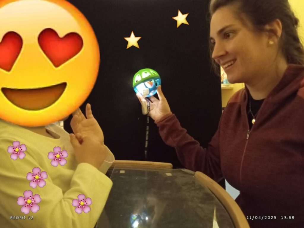 Un gioco🥳 interessante e luminoso✨✨✨ in realtà include una stimolazione sensoriale, attentiva e motoria a tutti i livelli😊. Si osserva👀, sì struttura il controllo del tronco e del capo per giocare meglio👍, si ascolta👂 ciò che racconta la terapista, si sta attenti😌, si memorizza📀, si elaborano strategie💡 per rispondere a delle richieste che portano al divertimento🎇 e quindi all’imparare💞.
